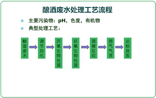 寧波鄞州區咸祥鎮釀香酒業公司主要釀造高檔白酒,在白酒釀造過程中會產生各種釀造廢水,其中主要污染物有PH、色度、有機物等,廢水的可生化性比較高,且含COD的濃度也比較大,我公司針對該公司釀酒廢水的特點,專門設計了“厭氧+好氧”的組合生物處理工藝,首先去除廢水中的大部分COD與有機物,然后再采用“混凝+氣浮”的物化處理工藝,來進一步去除廢水體中的懸浮物和COD,最終保證該公司排放的廢水穩定達標。